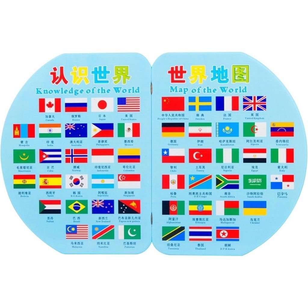 أحجية خريطة العالم الخشبية القابلة للطي مع الأعلام
