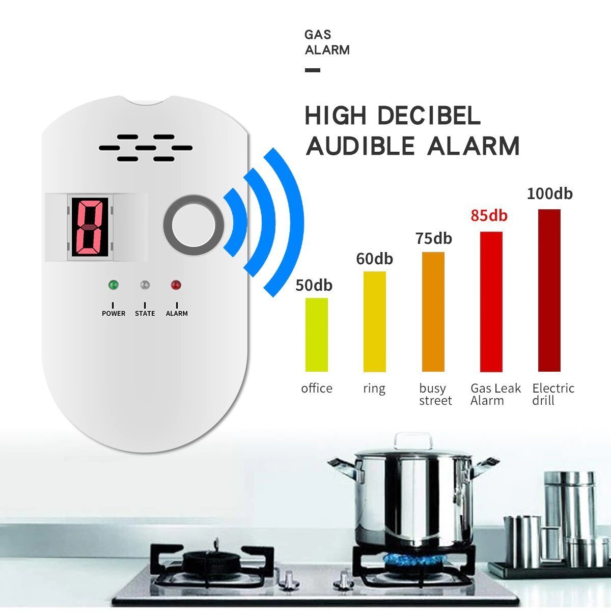 جهاز إنذار تسرب الغاز مع شاشة عرض رقمية عملي وعالي الجودة، مثالي للاستخدام اليومي ✨👌