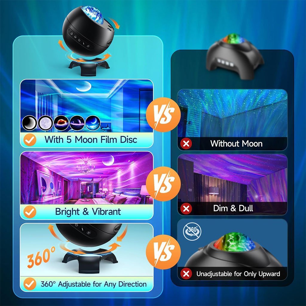 جهاز عرض أورورا وسماعة بلوتوث مع 15 وضع إضاءة عملي وعالي الجودة، مثالي للاستخدام اليومي ✨👌