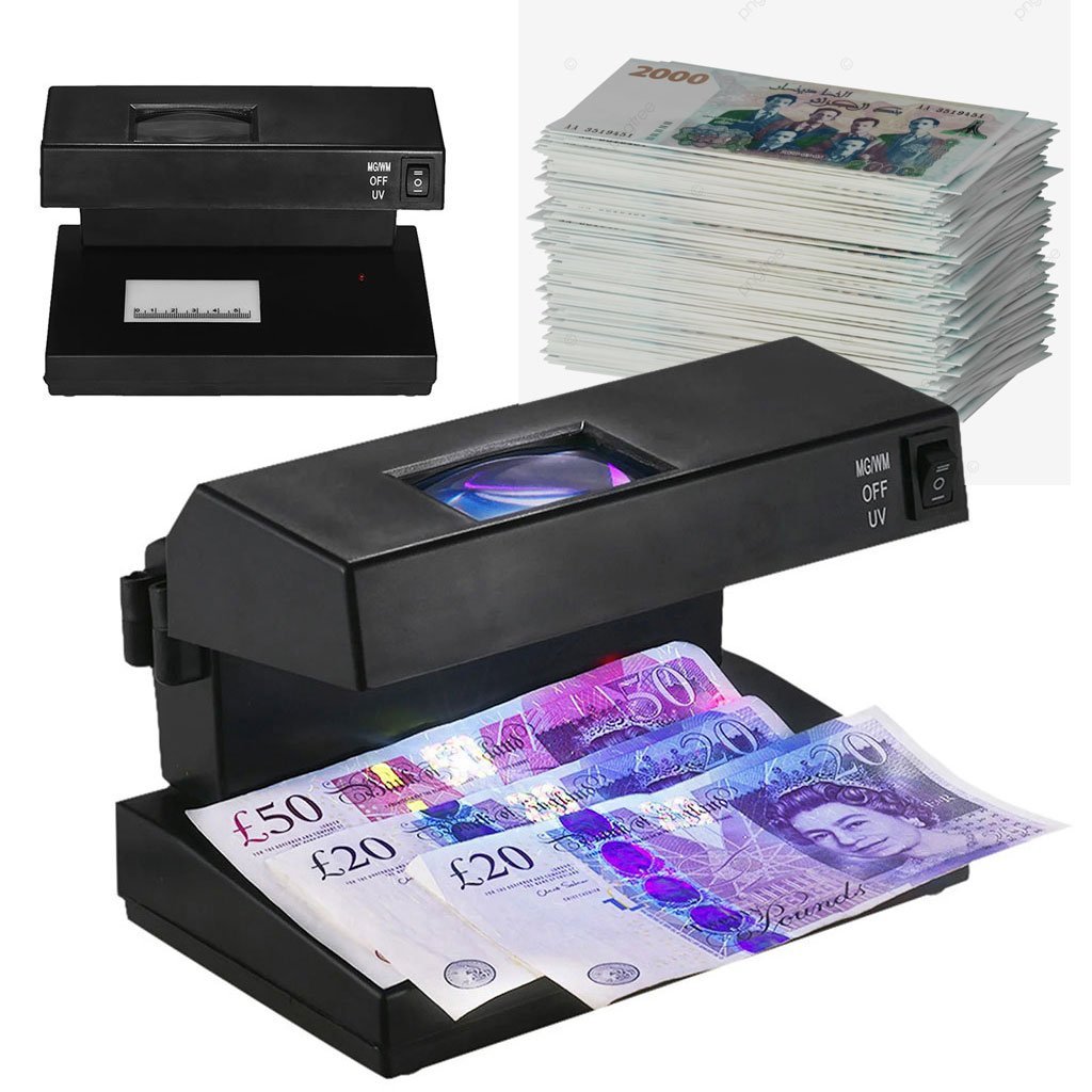 جهاز كشف العملات المزيفة بضوء فوق بنفسجي أزرق وأبيض