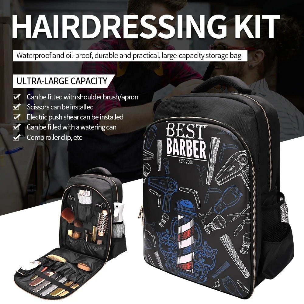 حقيبة ظهر لمصفف الشعر مزودة بحاملات لماكينات الحلاقة عملي وعالي الجودة، مثالي للاستخدام اليومي ✨👌