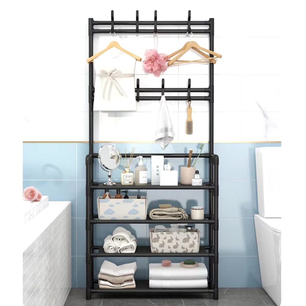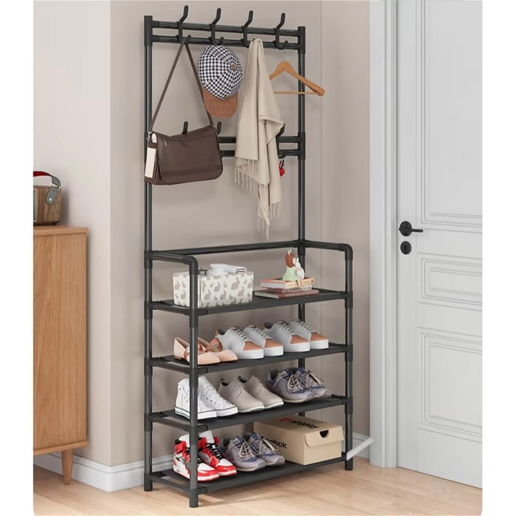 رف أحذية ورف معاطف من 4 طبقات مع 4 عملي وعالي الجودة، مثالي للاستخدام اليومي ✨👌