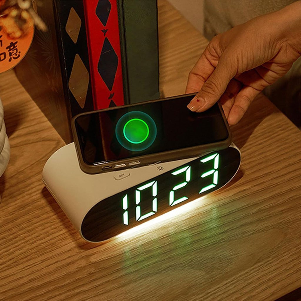 ساعة رقمية طراز وشاحن لاسلكي عملي وعالي الجودة، مثالي للاستخدام اليومي ✨👌
