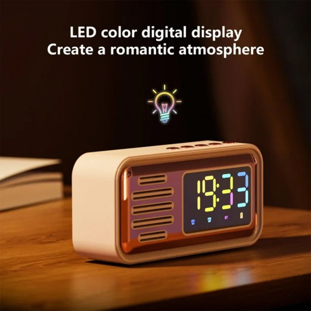 ساعة منبه بلوتوث بتصميم كلاسيكي مع مكبر صوت ووظيفة عملي وعالي الجودة، مثالي للاستخدام اليومي ✨👌