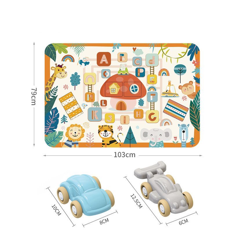 سجادة لعب بنمط حلبة الغابة مع سيارتين لعبة عملي وعالي الجودة، مثالي للاستخدام اليومي ✨👌