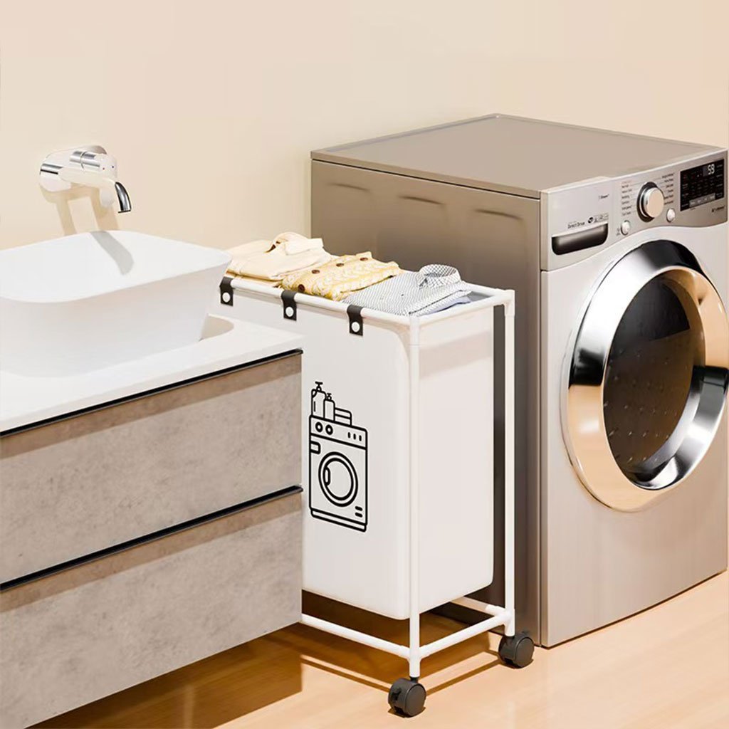 سلة غسيل بعجلات للملابس المتسخة في الحمام عملي وعالي الجودة، مثالي للاستخدام اليومي ✨👌