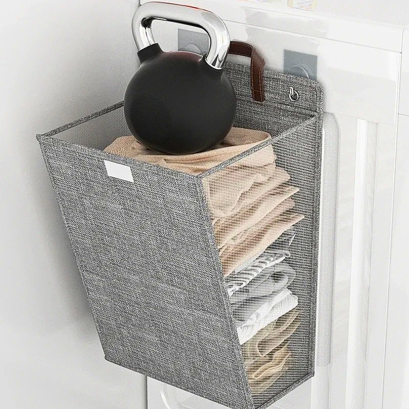 سلة غسيل قابلة للطي تُثبت على الحائط للملابس المتسخة