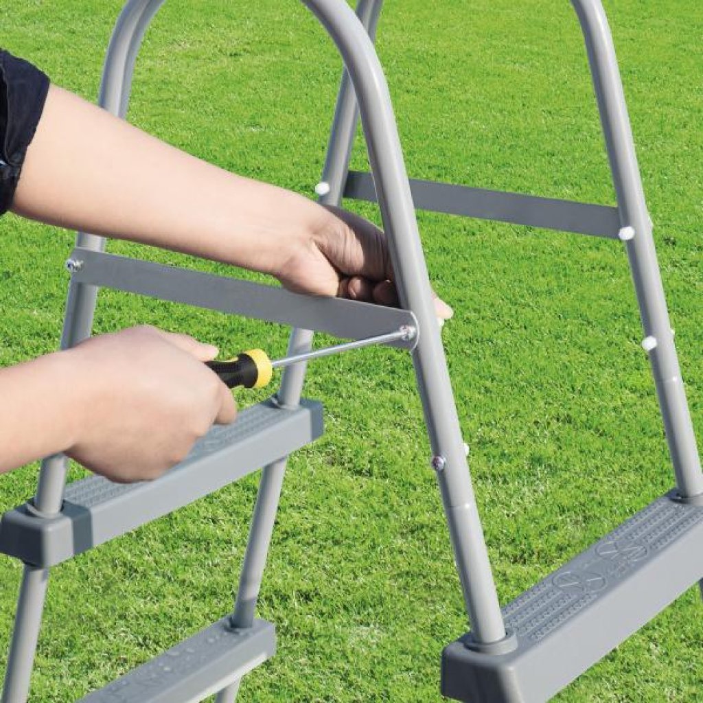 Nous vous proposons une échelle robuste et pliable pour grimper en toute sécurité dans la piscine de Bestway. Elle est fabriquée en acier durable de haute qualité. Elle est dotée de marches en plastique antidérapantes robustes et amovibles. capacité portante et une hauteur adaptée à diverses piscines. Préparez-vous à passer des moments amusants dans votre jardin potager en toute sécurité. Marches en plastique antidérapantes robustes et amovibles. Construction en acier durable facile à installer. Capacité portante maximale : 150 kg. Échelle d’une hauteur de 107 cm. Largeur de marche : 42 cm.