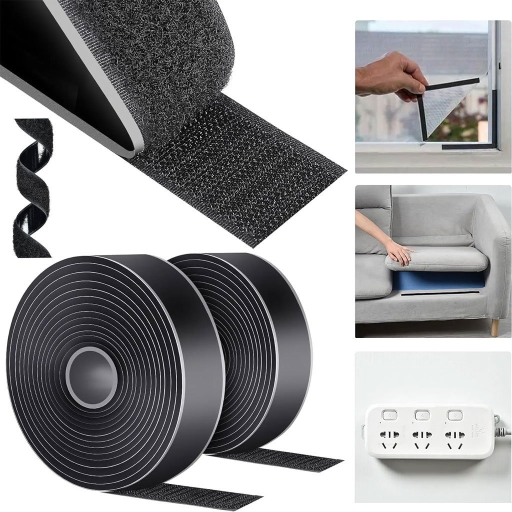 شريط فيلكرو أسود مزدوج الجوانب 200 سم × 2 عملي وعالي الجودة، مثالي للاستخدام اليومي ✨👌