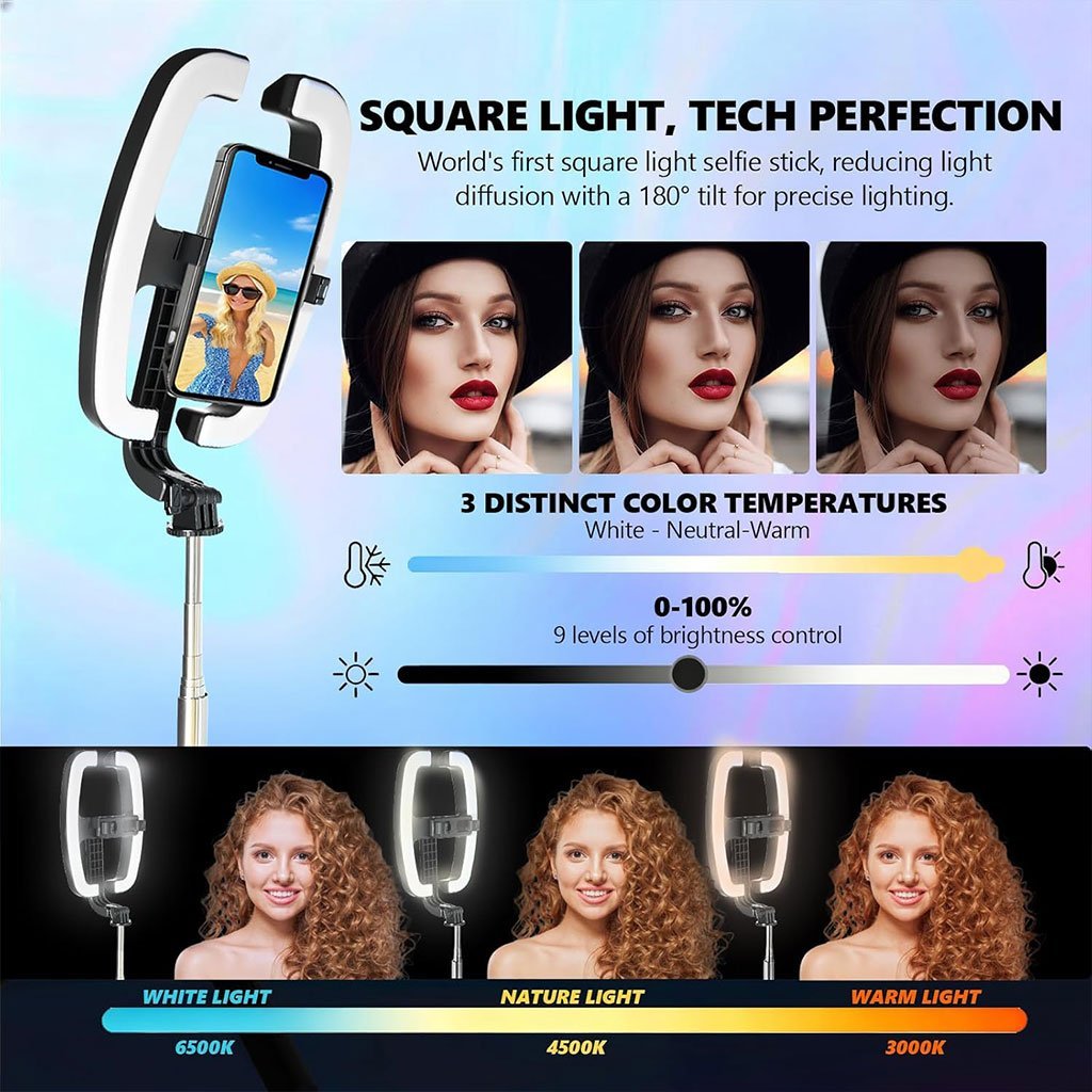عصا سيلفي قابلة للتمديد مع حامل للهاتف وإضاءة عملي وعالي الجودة، مثالي للاستخدام اليومي ✨👌