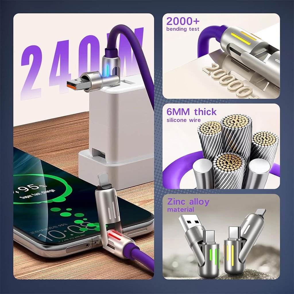 كابل شحن 4 في 1 مزود بموصلات عملي وعالي الجودة، مثالي للاستخدام اليومي ✨👌