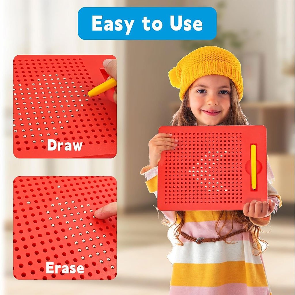 [Tableau Magnetique Enfant]: Les enfants dessinent et griffonnent sur les Planche À Dessin De Billes Magnétiques à l’aide du stylo magnétique fourni, sans gaspiller d’encre ni de papier, et peuvent être effacés et recréés à tout moment. Les cartes de dessin recto-verso de l’ensemble fournissent une référence pour le dessin des enfants. [Compact et Portable]: Le Tablette Magnetique mesure 21,5 x 17,5 x 1,2 cm, une taille facile à tenir par les enfants pour dessiner et effacer, et parfaite pour être rangée dans leur bureau ou leur sac, ce qui leur permet d’utiliser le tableau à tout moment à la maison, en classe ou en voyage. [Facile à Utiliser]: Utilisez le stylo magnétique pour dessiner le motif en attirant les perles sur la surface du Tableau Dessin Enfant, de sorte que les perles sont collées dans les trous du panneau pour pouvoir dessiner des motifs, et poussez doucement la perle avec le côté du stylo ou le doigt pour qu’elle revienne sur le tableau. [Utilisation Assurée]: Le Tablette Magnétique Enfant est fabriqué à partir de plastique fiable et de billes d’acier, qui ne nuiront pas à la santé de votre enfant. Les vis sont fermement fixées, durables et résistantes aux chutes ; les billes sont fixées à l’intérieur du tableau et ne tomberont pas, de sorte que les enfants peuvent jouer en toute confiance. [Jouet D’apprentissage Précoce]: Le Tablette Magnetique Enfant est un jouet d’apprentissage parfait pour les enfants qui peuvent utiliser leur imagination pour créer tout en exerçant leur motricité fine et leur coordination oculo-manuelle. Les enfants peuvent également jouer avec leurs parents pour améliorer leurs capacités d’interaction et de communication.