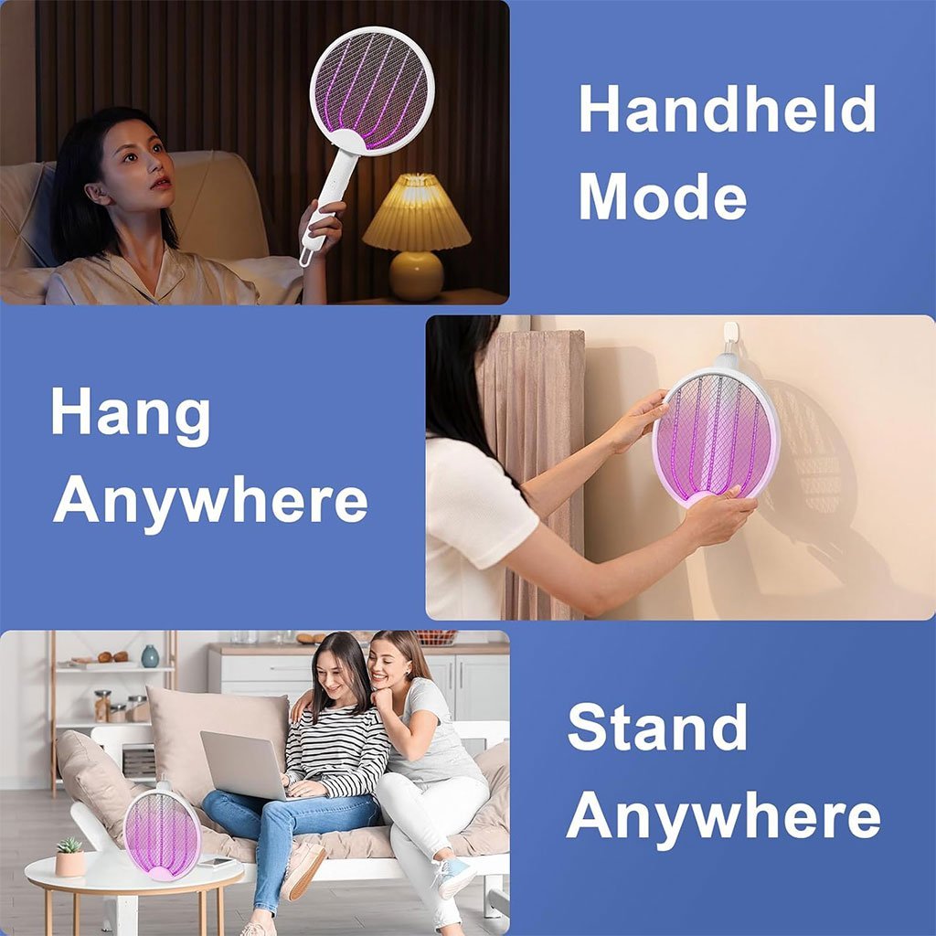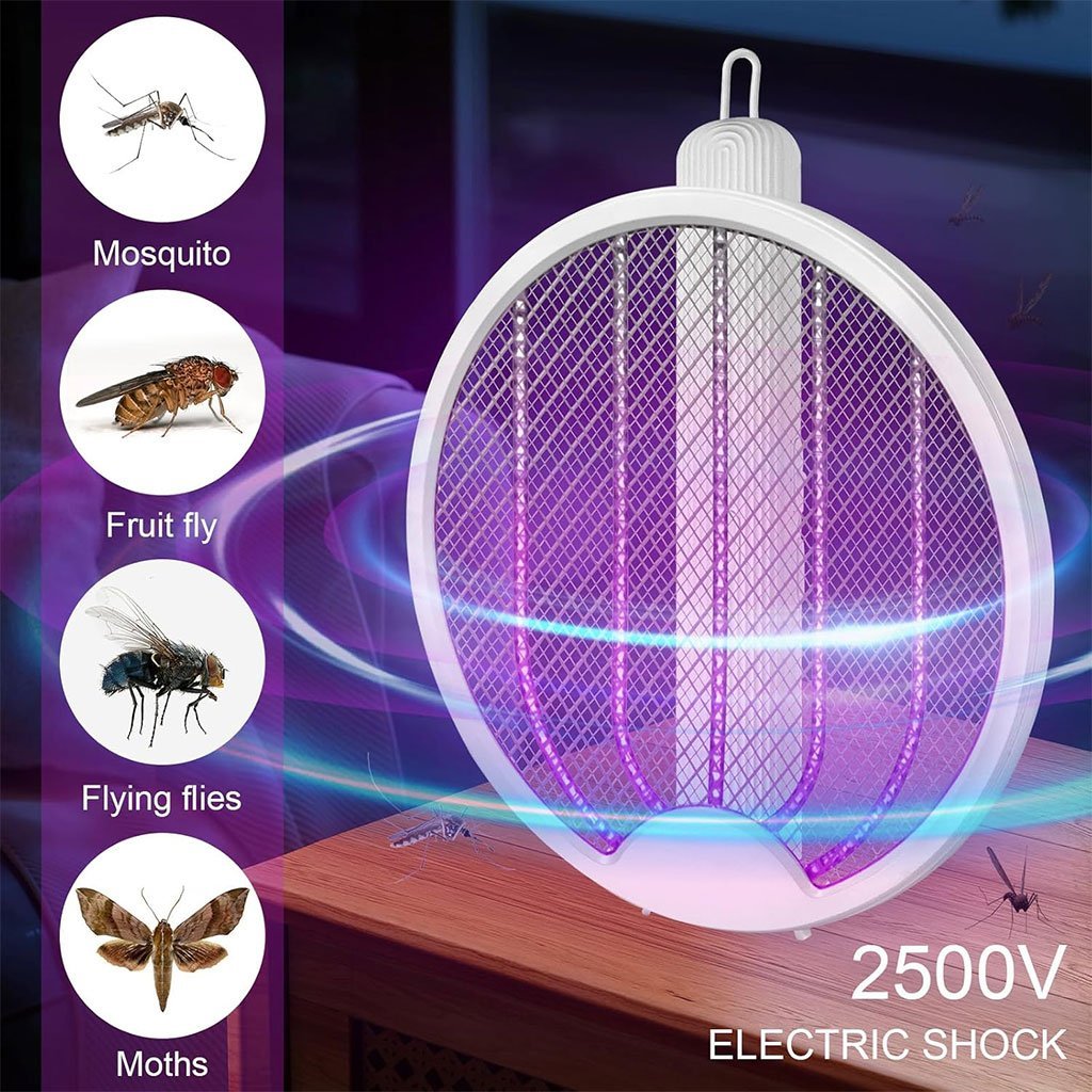 مضرب ذباب كهربائي 3 في 1 عملي وعالي الجودة، مثالي للاستخدام اليومي ✨👌