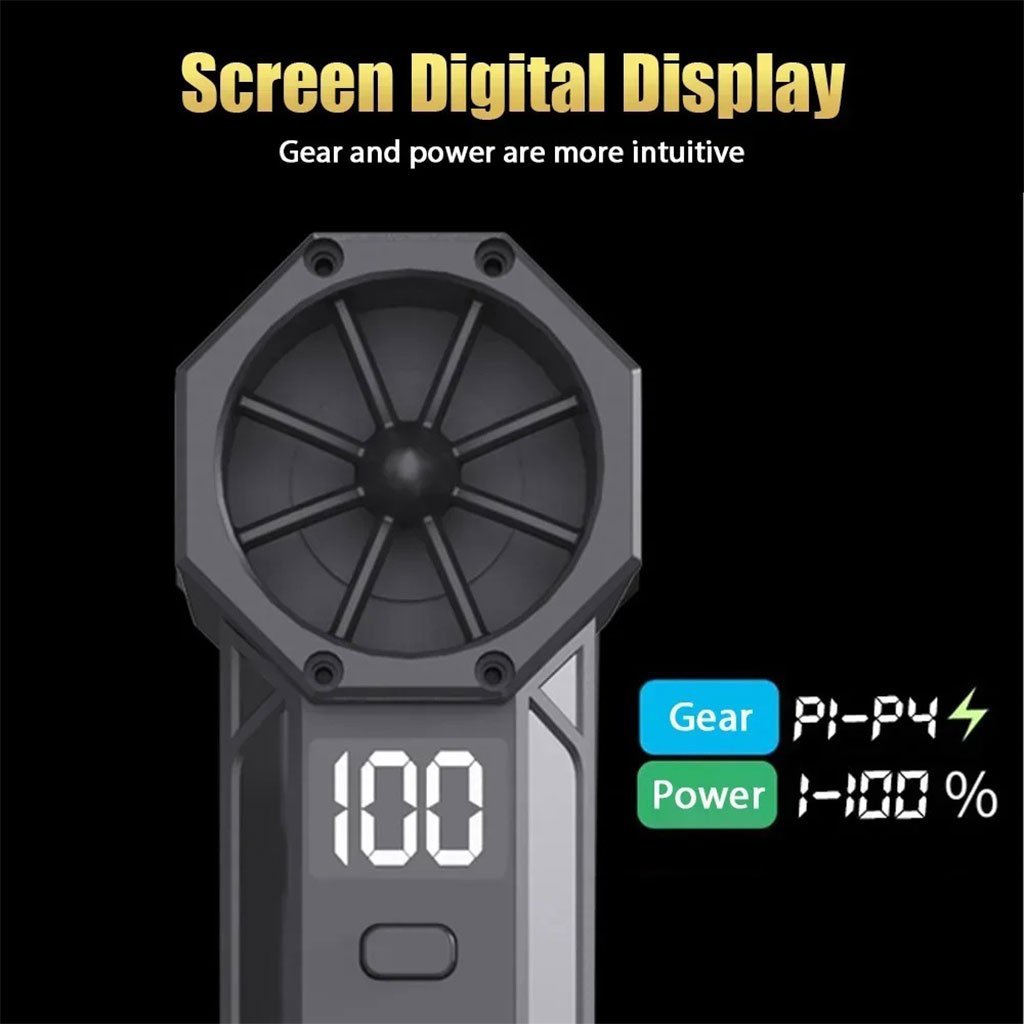 Caractéristiques : 1. Vent ultra-puissant : le moteur sans balais interne atteint des vitesses élevées, jusqu’à 130 000 tr/min. 2. 4 vitesses : première vitesse lente (40 000 tr/min), deuxième vitesse moyenne (80 000 tr/min), troisième vitesse ouragan (110 000 tr/min), quatrième vitesse super ouragan (130 000 tr/min). 3. Design lumineux : ce produit est équipé d’ampoules visibles même dans l’obscurité, ce qui permet de nettoyer la poussière dans les coins et de ne plus avoir peur de la nuit en camping. 4. Portable et compact : grâce à sa petite taille et sa conception légère, il est très pratique à transporter. Le boîtier compact du ventilateur turbo le rend facile à transporter et à utiliser en extérieur. 5. Position de la vitesse, affichage numérique du niveau de batterie : le niveau de batterie est visible en un coup d’œil. Ce sèche-cheveux puissant est équipé de 2 batteries intégrées, permettant un fonctionnement sans fil, sans alimentation externe. Profitez du confort d’une utilisation longue durée. 6. Structure de haute qualité : Design de poche sans fil, élégant et raffiné. L’interface de charge TYPE-C prend en charge la charge rapide, avec un format compact et une utilisation plus facile qu’avec une seule main, garantissant une charge rapide et efficace. 7. Simplicité d’utilisation : Réglage à 4 vitesses avec indicateur lumineux. La conception ergonomique des ventilateurs turbo portables garantit une utilisation aisée. De plus, la carte de charge dispose de fonctions de protection sûres et fiables contre la charge et la surchauffe.