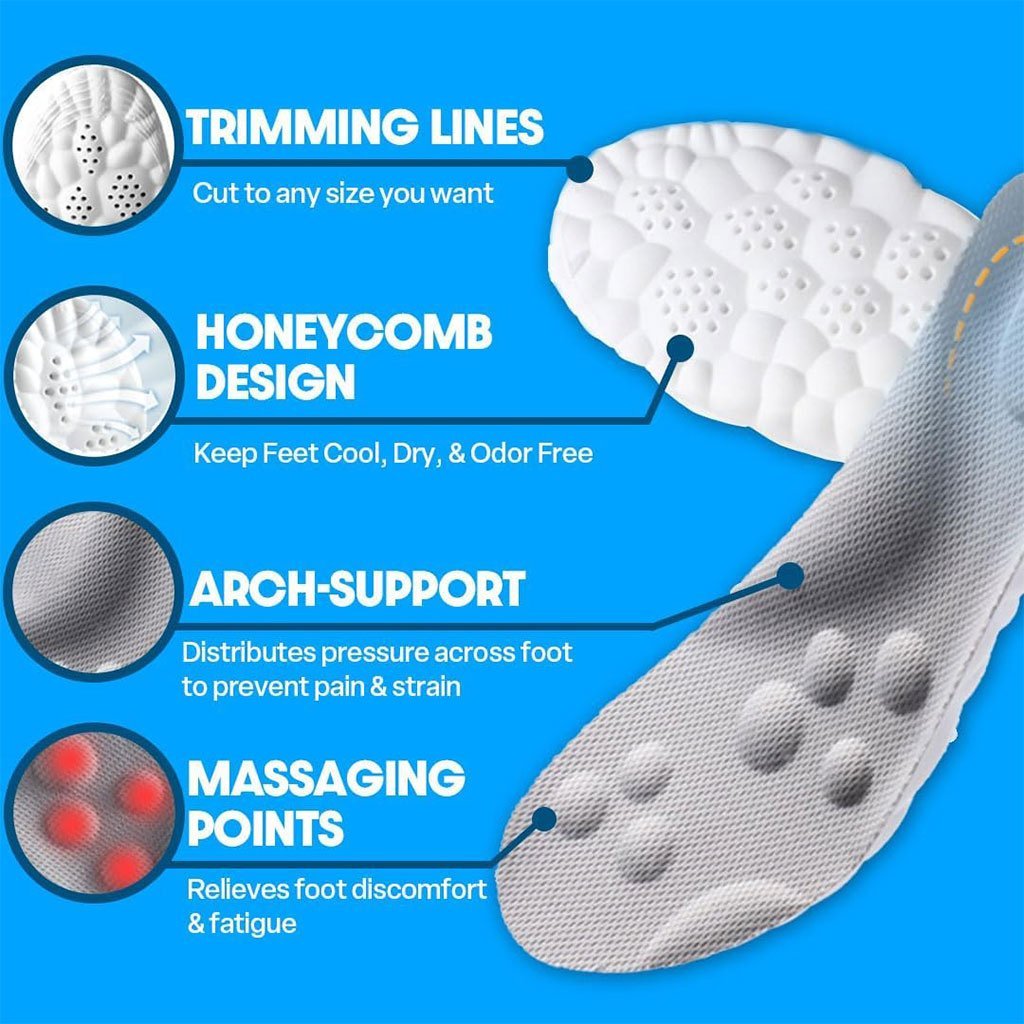 Le matériau hautement élastique offre un soutien et un amorti pour un confort durable, et renvoie de l’énergie à chaque pas, résolvant le problème de déformation des semelles intérieures lorsqu’elles frappent le bas. Il a des trous d’aération sur le dos, sèche rapidement, évite l’étouffement et les odeurs, est plus doux et plus confortable lors de la marche. Avec de petites saillies, la surface de la semelle intérieure est conçue de façon ergonomique pour masser les points d’acupuncture sur la plante des pieds et soulager l’inconfort et la fatigue du pied. Soulage l’inconfort du pied causé par la marche et la position debout à long terme, et améliore le confort de marche. Offre confort et amorti pour vos chaussures décontractées ou quotidiennes telles que les chaussures décontractées, les bottes de travail ou les chaussures, les baskets ou même les chaussures de randonnée. La semelle intérieure pleine longueur peut être redimensionnée avec des ciseaux pour s’adapter à votre pied, il suffit de couper l’avant pour l’adapter à votre chaussure.