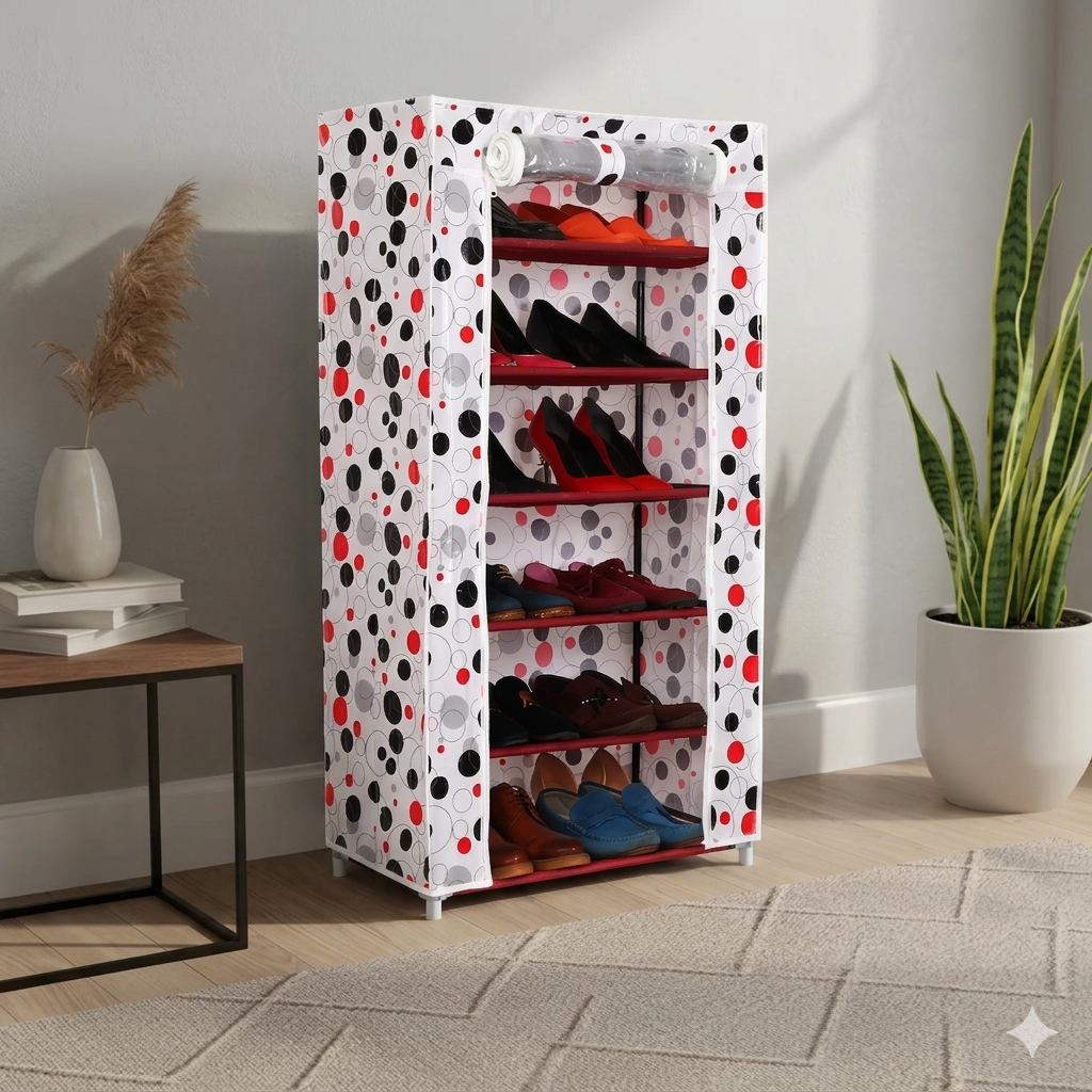 • سعة تخزين “ماكسي” (6 Layers): يتكون من 6 أرفف واسعة تستوعب مختلف أنواع الأحذية؛ من الكعب العالي والأحذية الكلاسيكية إلى الأحذية الرياضية، مما يحافظ على ترتيب البيت بشكل دائم.