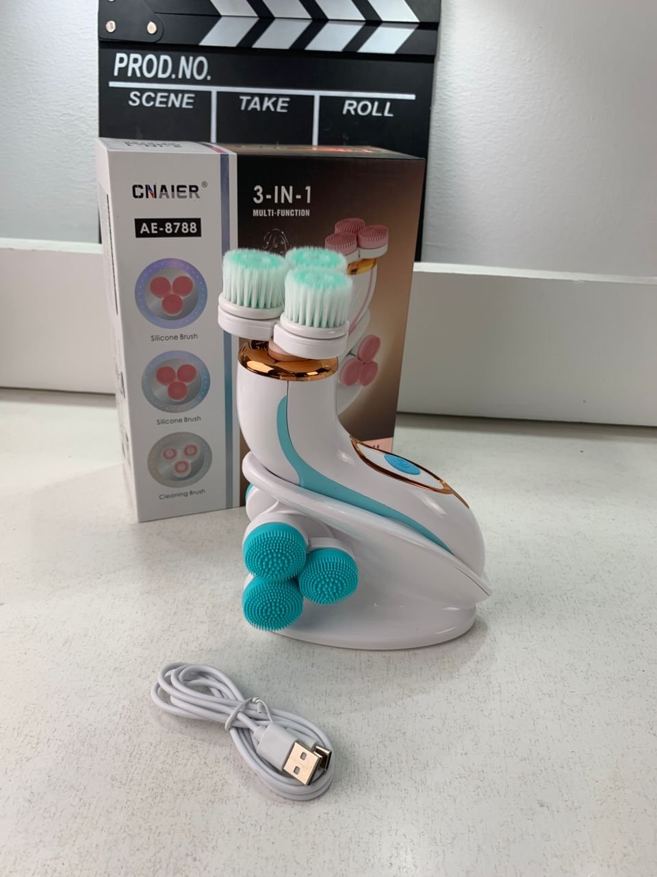 | Brosse Nettoyante Électrique Cnaier AE-8788 3 Têtes Rotatives Recharge USB – جهاز تنظيف البشرة بعمق | 1 4500 د.ج |