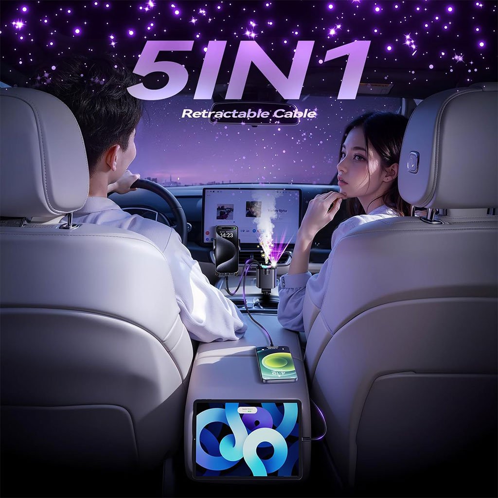Chargeur voiture rétractable 5 en 1 avec aromathérapie et lumière des étoiles – شاحن سريع للسيارة مع معطر