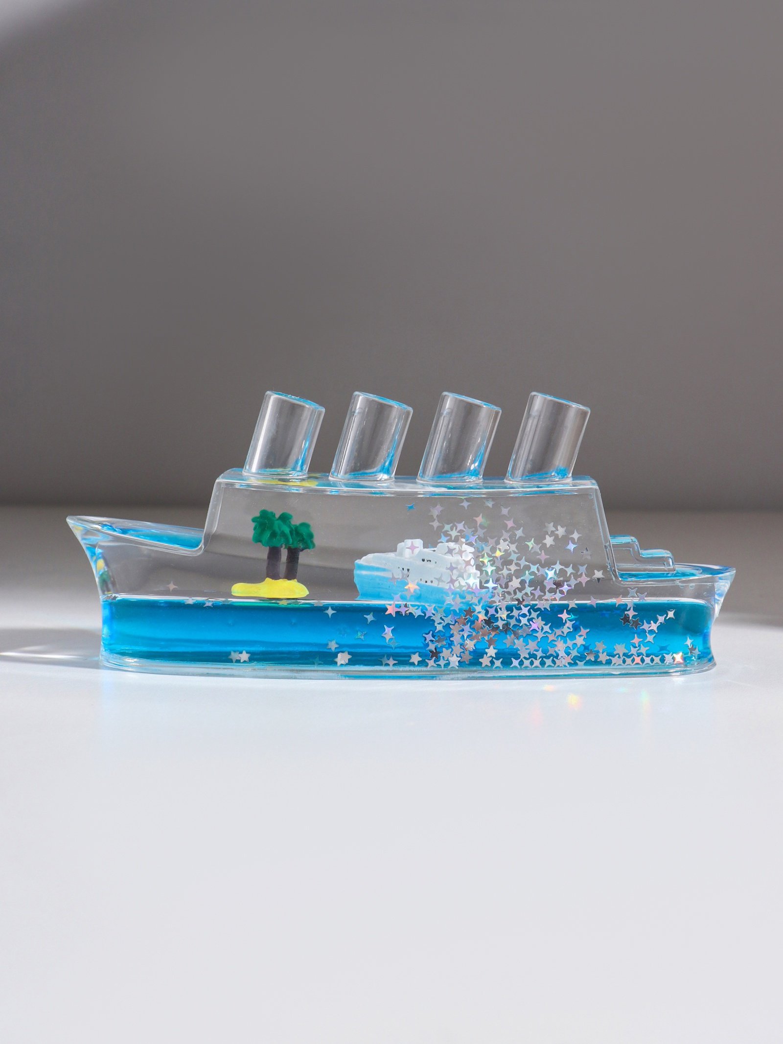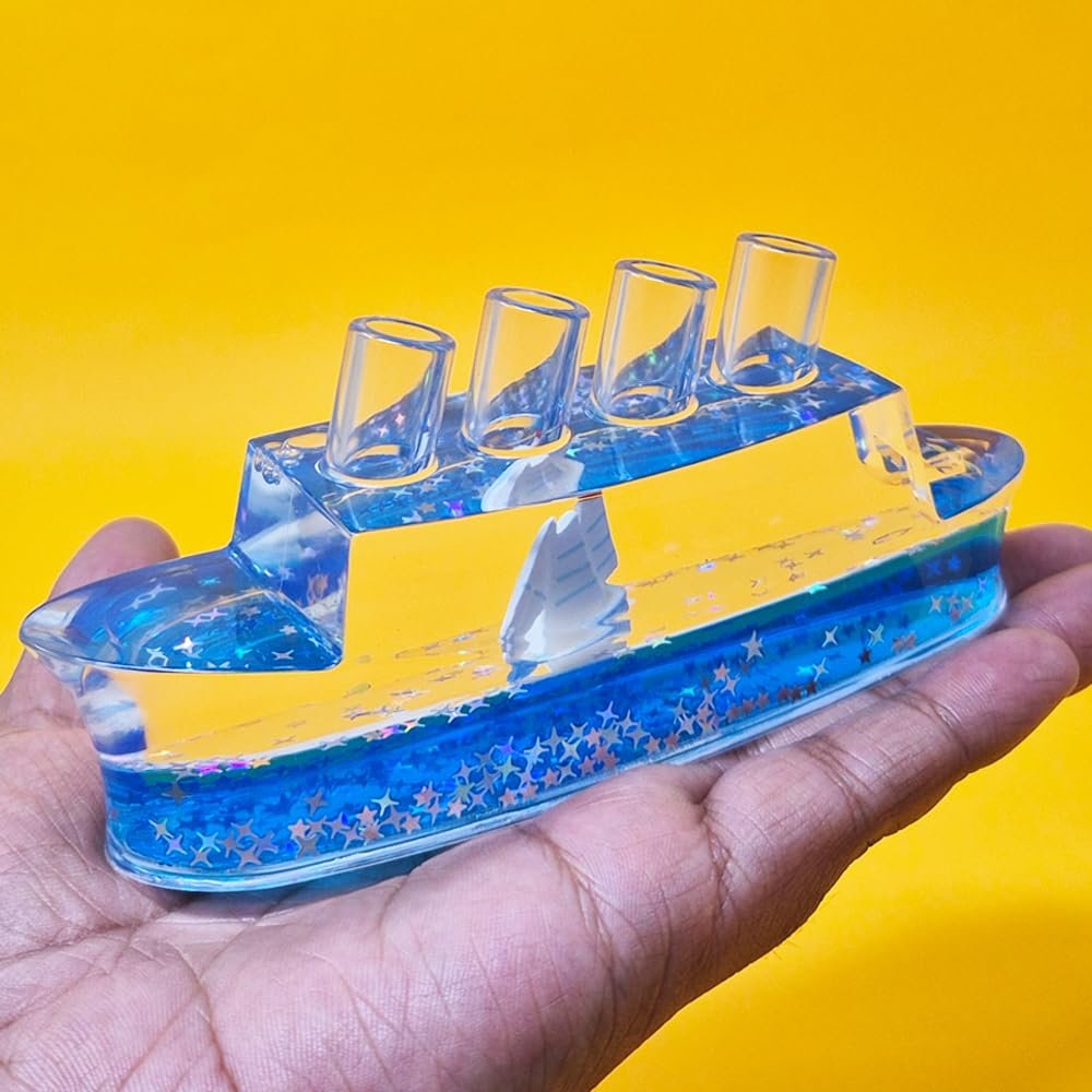 • تأثير “مضاد للغرق” مذهل: بفضل السوائل المتدرجة الكثافة، تظل السفينة والـ “جبل الجليدي” عائمين دائماً فوق السطح، مما يعطي مشهداً بصرياً ممتعاً يحاكي تحدي الأمواج والصمود.