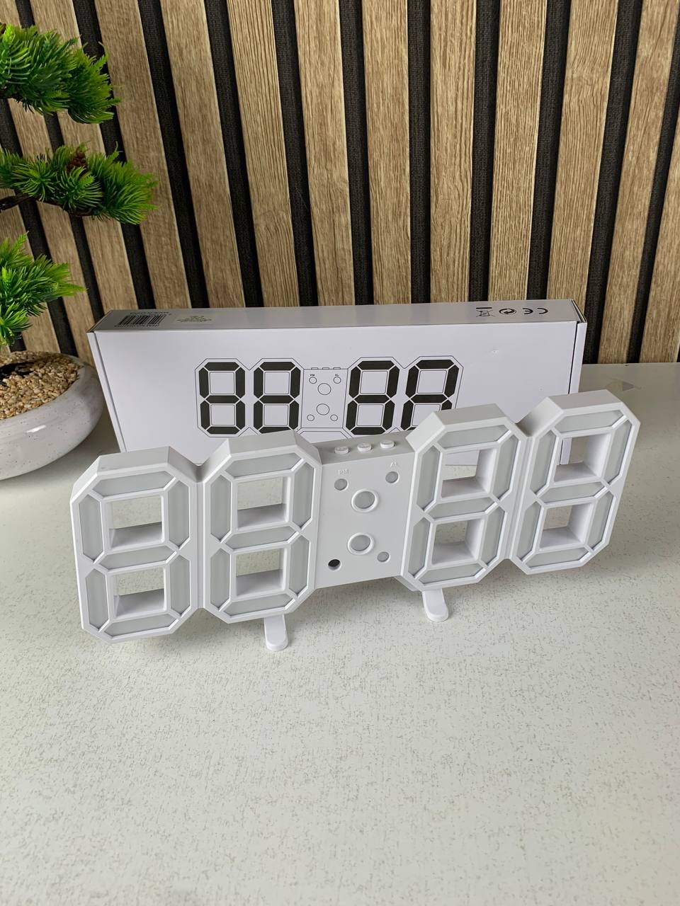 Horloge Murale numérique LED Blanche 3D GH0720L – ساعة رقمية تصميم ثلاثي الأبعاد
