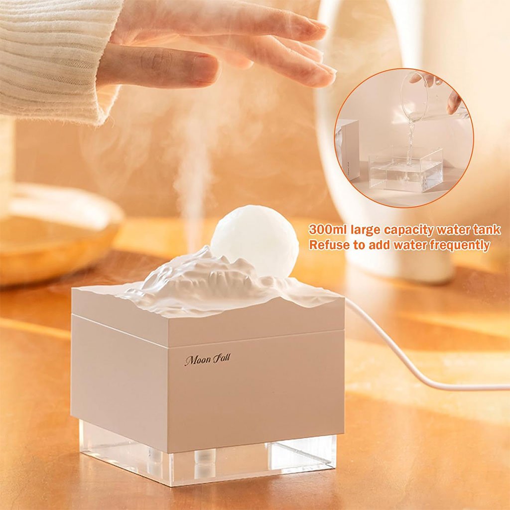 Humidificateur Cube 300 ml avec Veilleuse de Lune Colorée – معطر جو في الغرفة