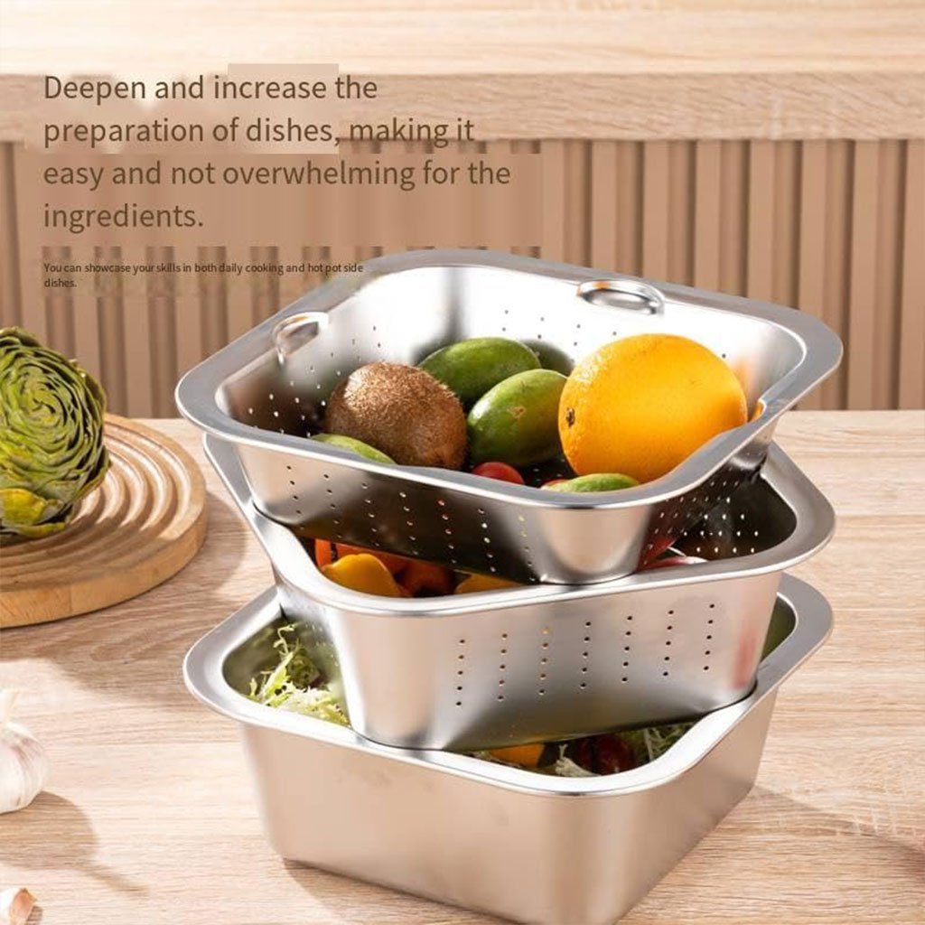 Râpe multifonctionnelle Delaval en acier inoxydable avec panier d’égouttage 3EN1 – مفرمة وقطاعة خضر متعددة الإستعمالات